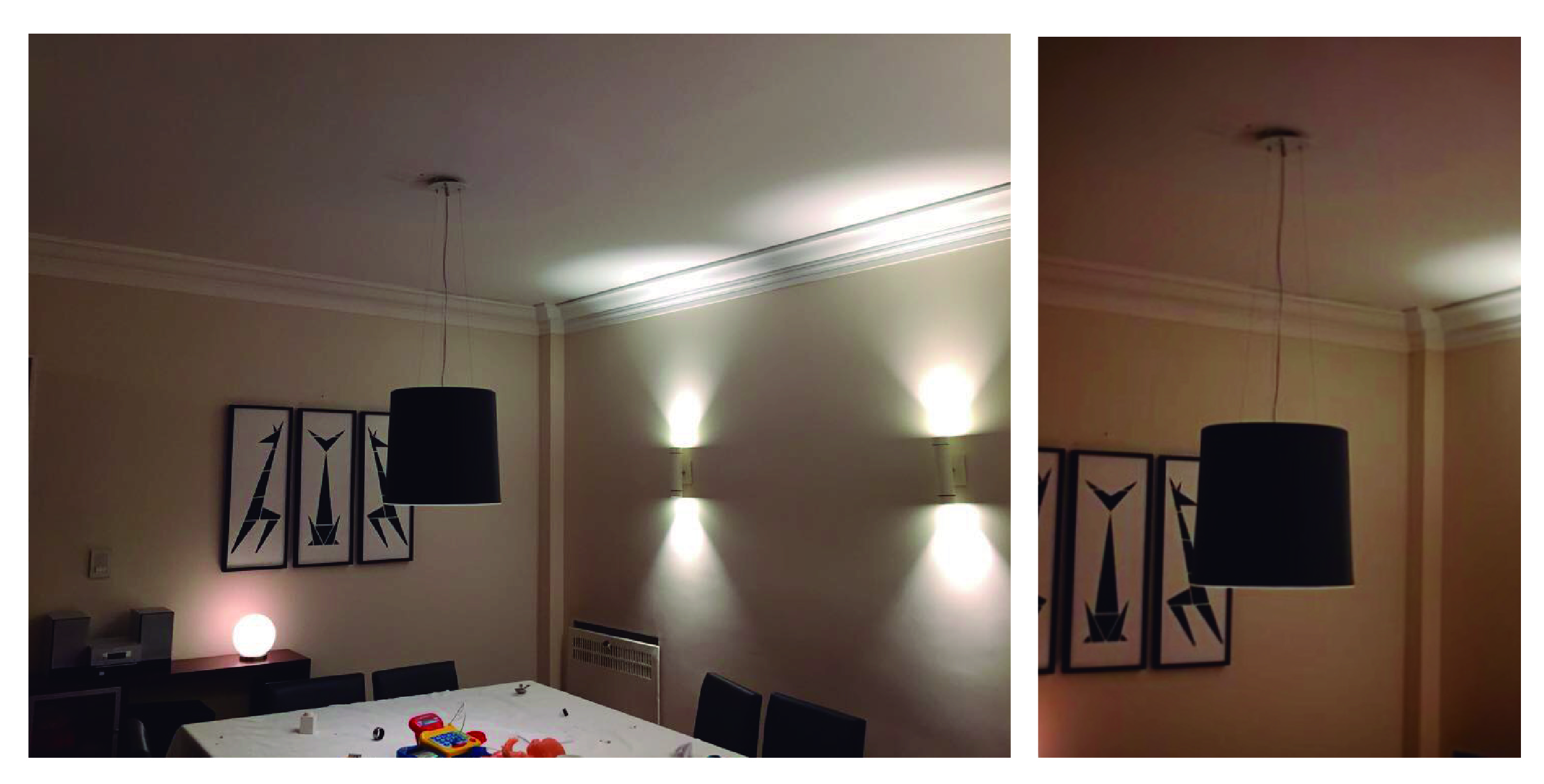 Aplique Cavia: Al comedor le agregamos capas con los Apliques Cavia Bidireccionales. Los apliques Cavia dan una luz indirecta y súper suave que baña la pared, dándole profundidad y calidez al espacio al toque. Con los Cavia, decís adiós a las sombras duras y generando un ambiente ideal para cena o para relajarse después de comer. Son fáciles de instalar y su diseño sobrio puede ir con cualquier estilo. Si ya tenés una lámpara directa sobre la mesa (como la HiHat), los Cavia son el complemento perfecto para terminar de armar el Comedor.